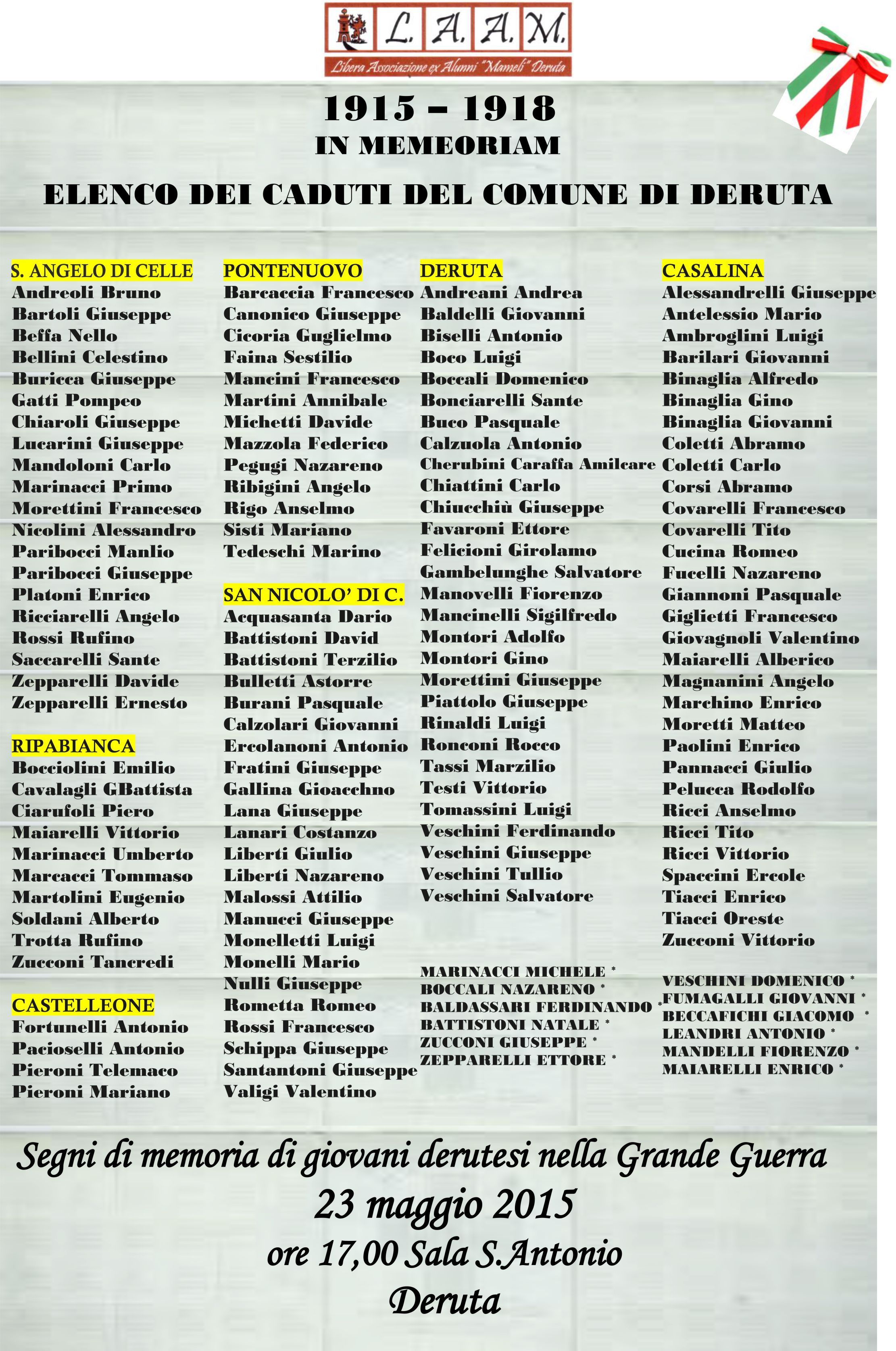 CELEBRAZIONI DEL CENTENARIO DELL’INGRESSO DELL’ITALIA NELLA PRIMA GUERRA MONDIALE