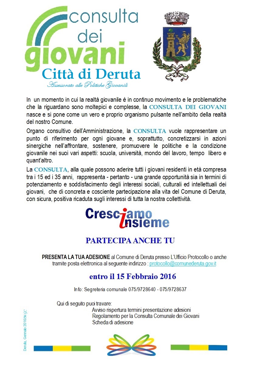 CONSULTA DEI GIOVANI ….. PARTECIPA ANCHE TU!!!!!