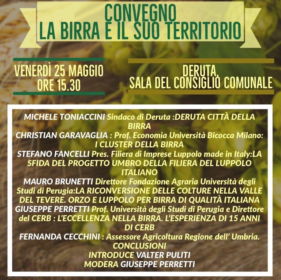 CONVEGNO “LA BIRRA E IL SUO TERRITORIO” – DERUTA, 25 MAGGIO 2018