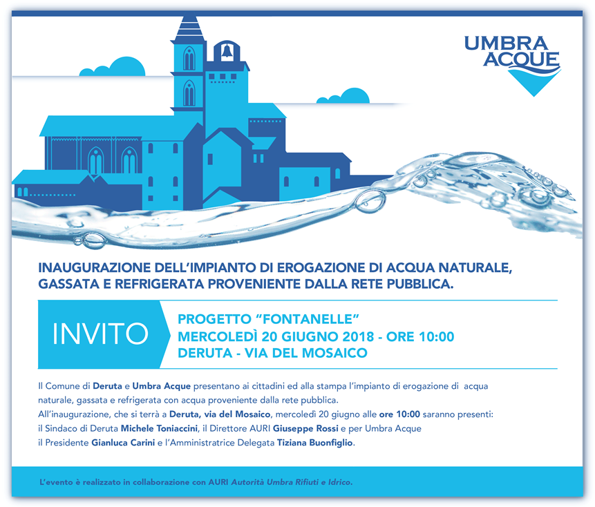INAUGURAZIONE DELL’IMPIANTO DI EROGAZIONE DI ACQUA NATURALE, GASSATA E REFRIGERATA PROVENIENTE DALLA RETE PUBBLICA