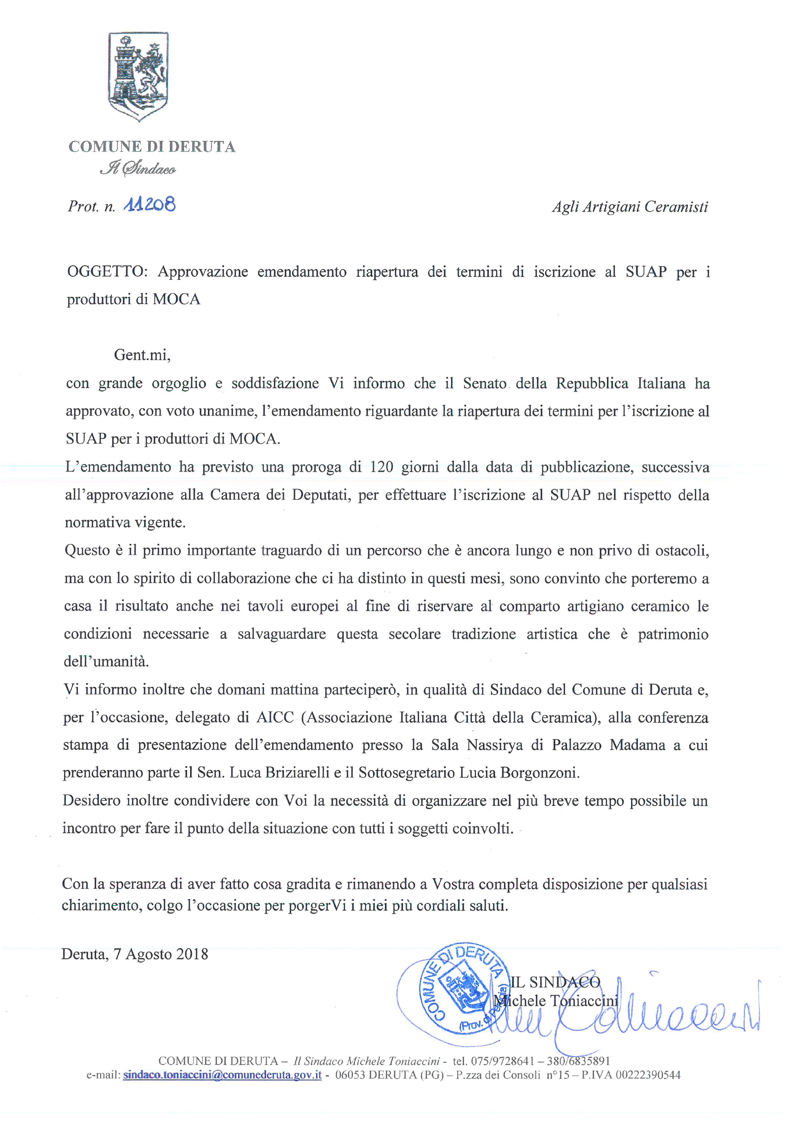 APPROVAZIONE EMENDAMENTO RIAPERTURA DEI TERMINI DI ISCRIZIONE AL SUAP PER I PRODUTTORI DI MOCA