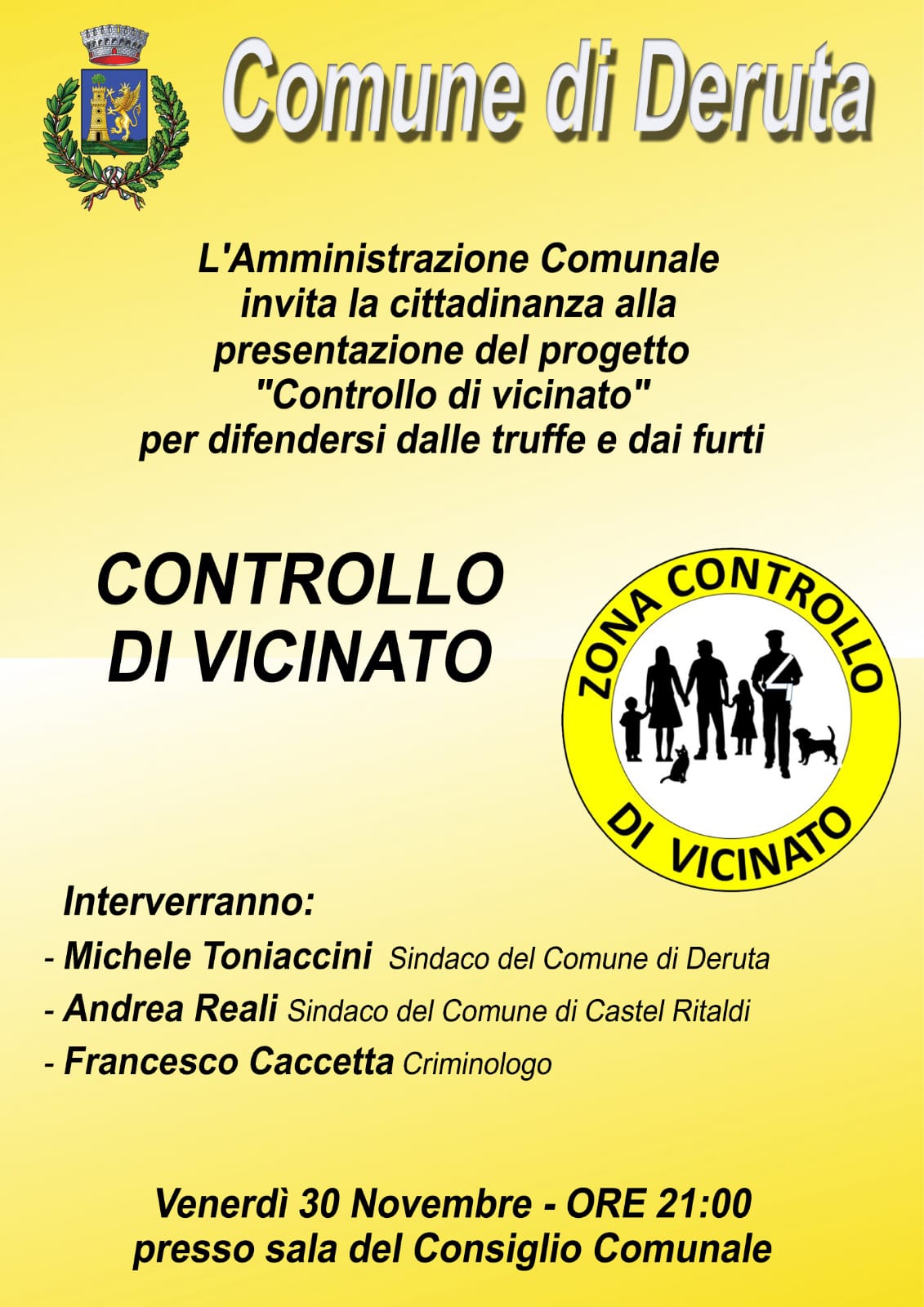 PRESENTAZIONE PROGETTO “CONTROLLO DI VICINATO” – 30 NOVEMBRE 2018