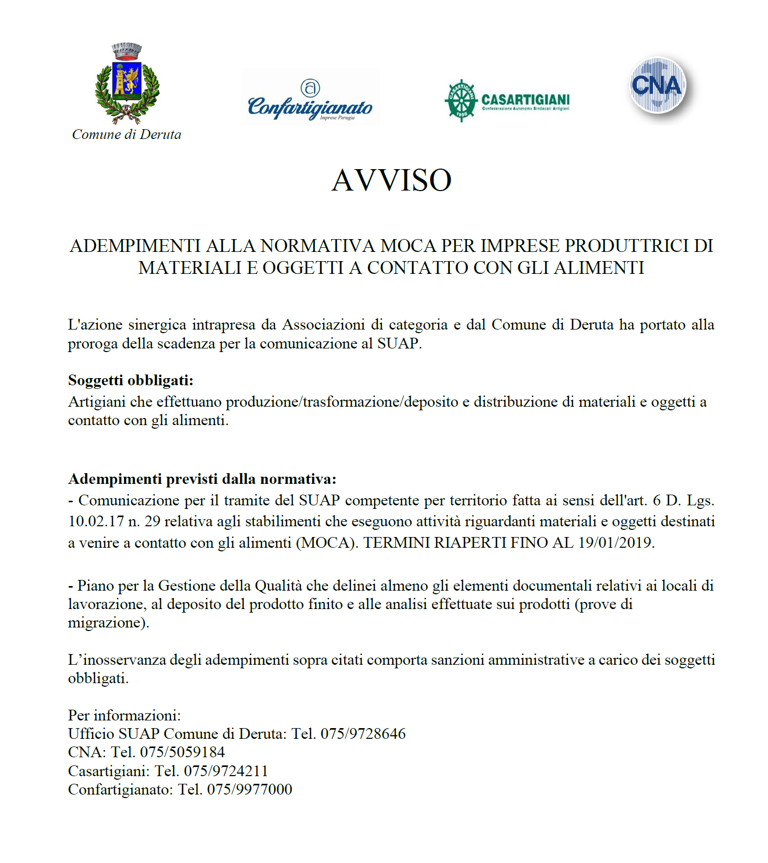 ADEMPIMENTI ALLA NORMATIVA MOCA – AVVISO