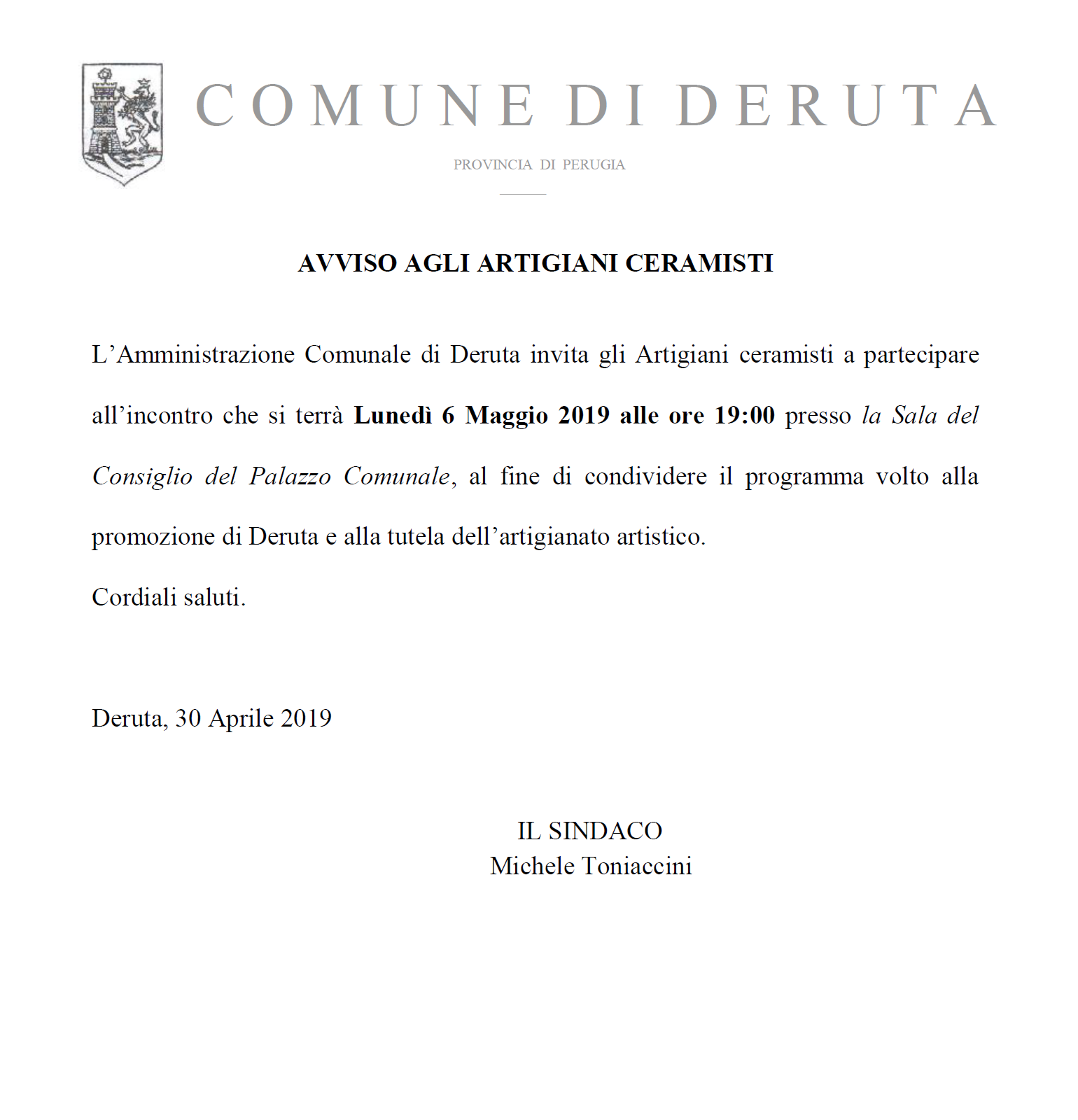 AVVISO AGLI ARTIGIANI CERAMISTI