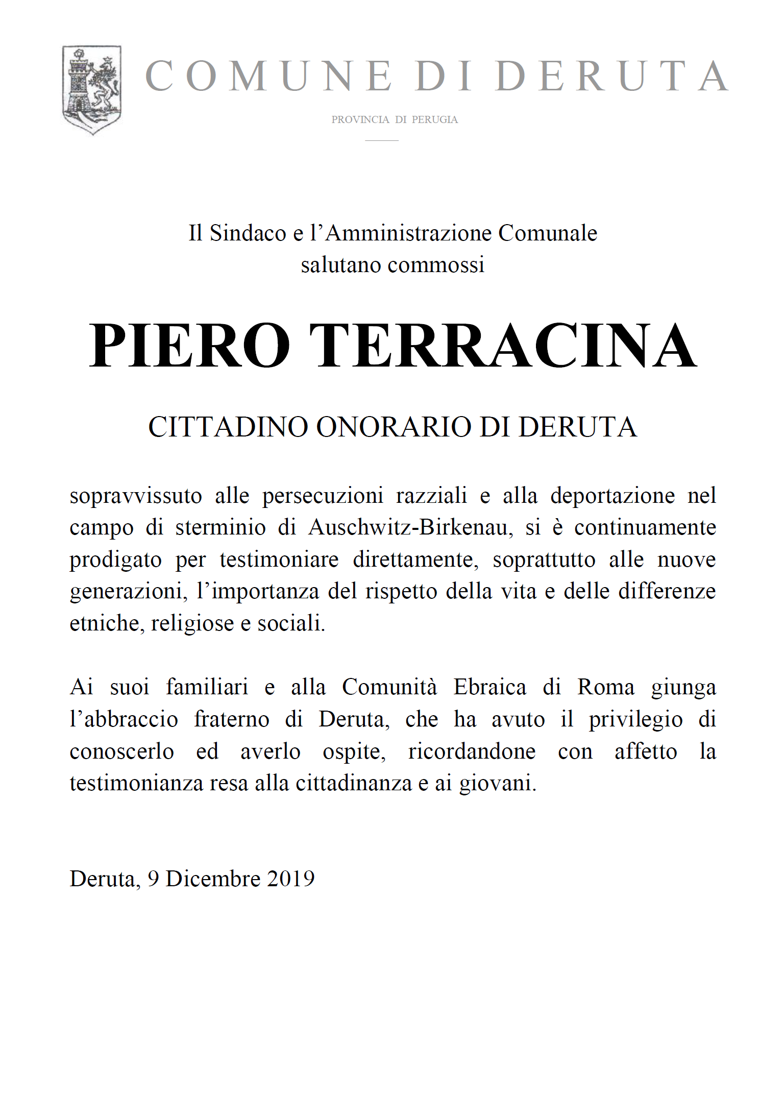PIERO TERRACINA (12 Novembre 1928 – 8 Dicembre 2019)