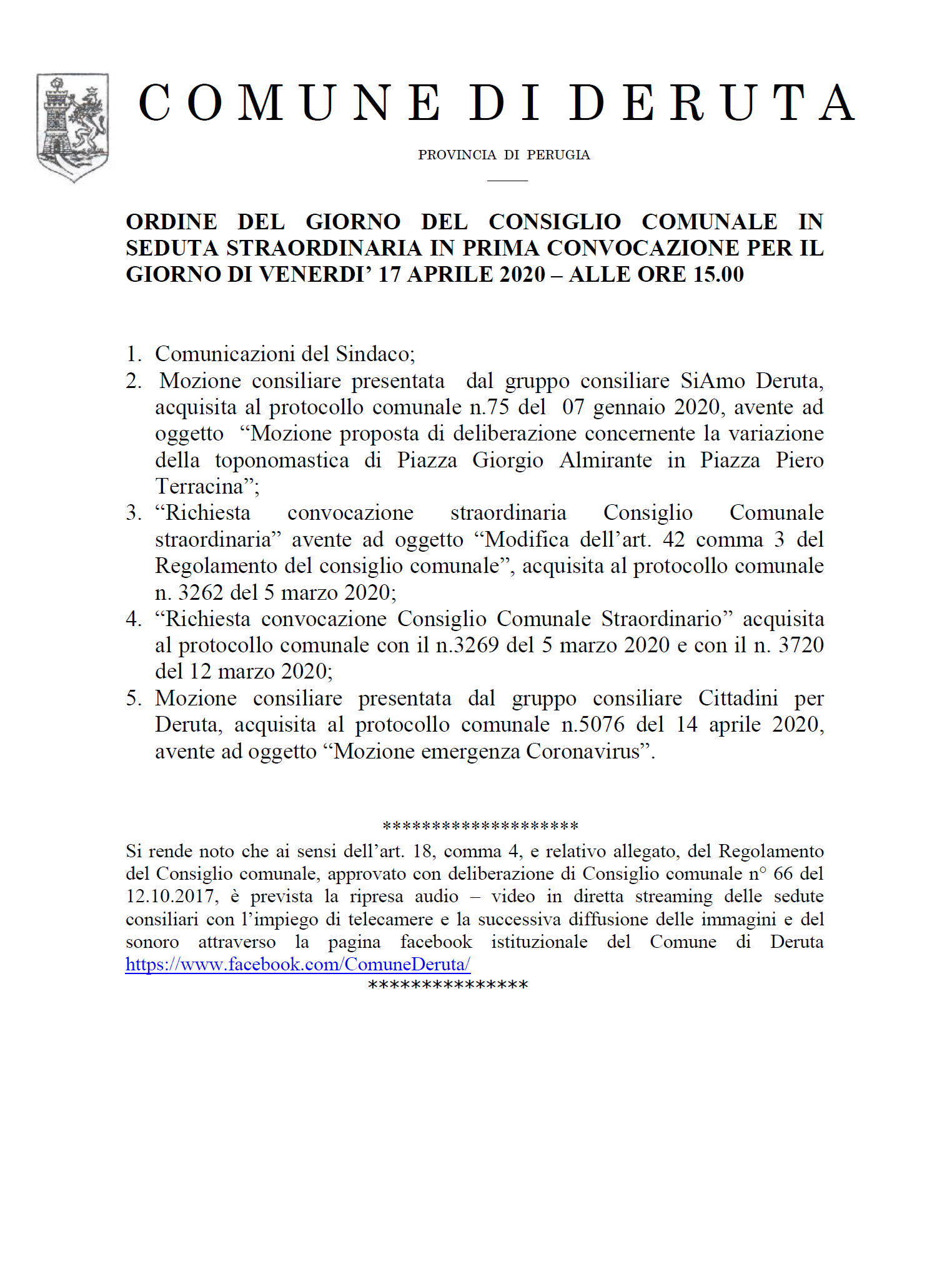 CONSIGLIO COMUNALE DEL 17 APRILE 2020