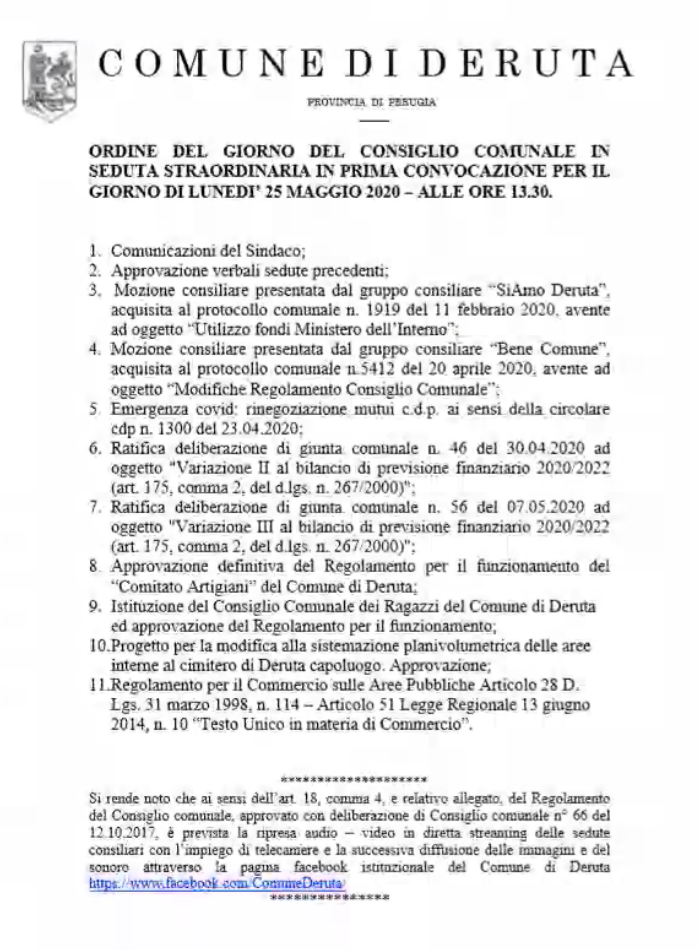 CONSIGLIO COMUNALE DEL 25 MAGGIO 2020