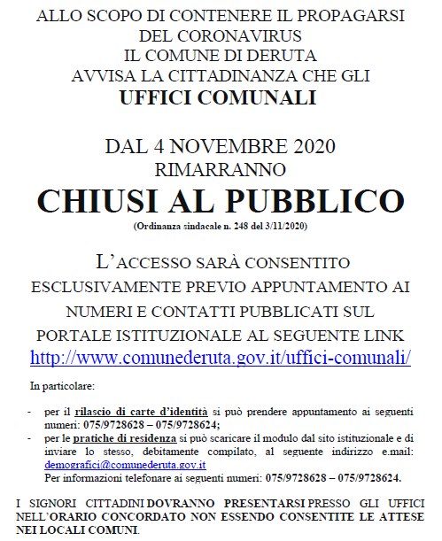 CHIUSURA AL PUBBLICO DEGLI UFFICI COMUNALI
