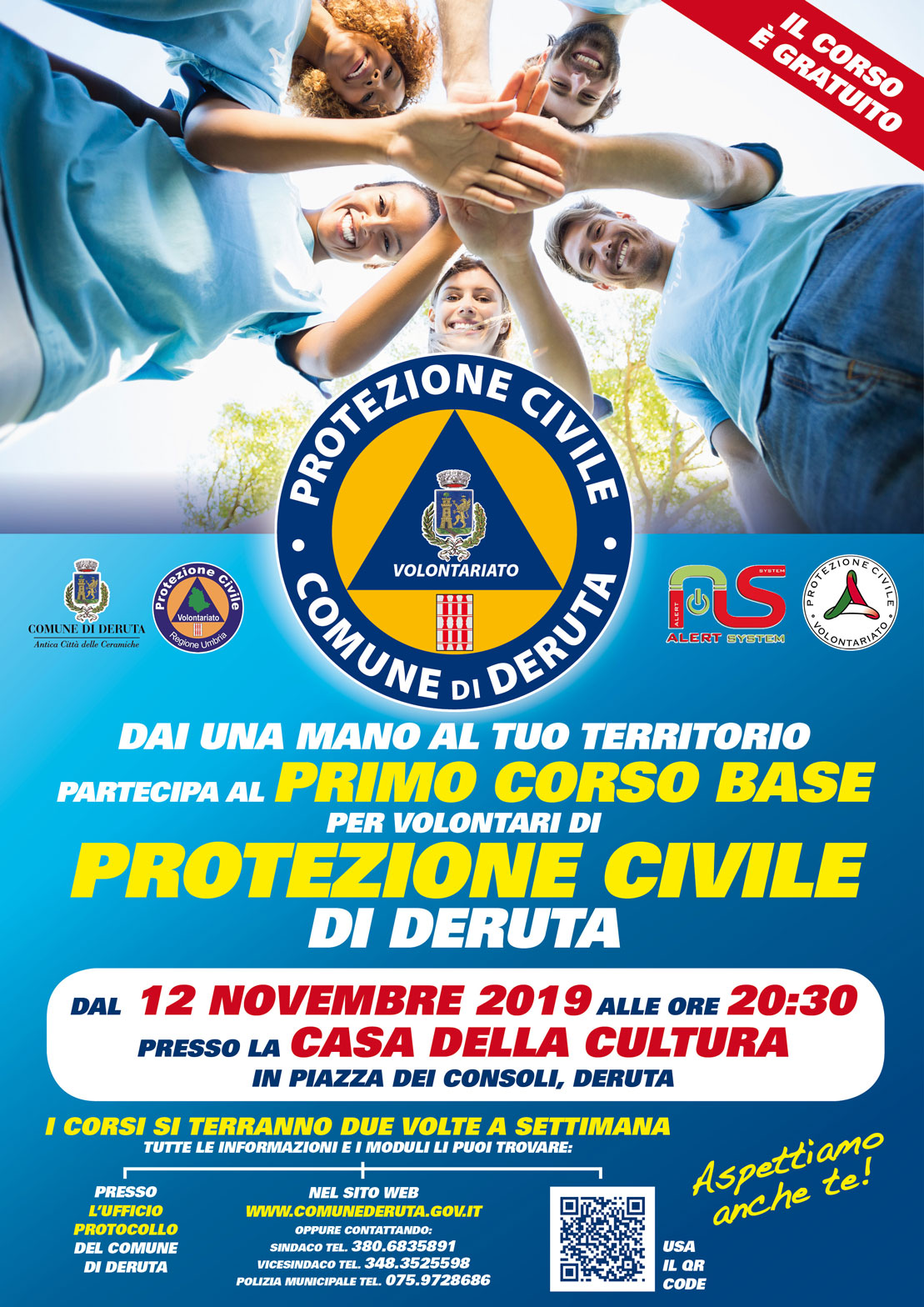 Se hai compiuto 18 anni e vuoi impegnare un po’ del tuo tempo libero per l’attività di prevenzione e per dare aiuto in caso di calamità, la PROTEZIONE CIVILE DI DERUTA cerca volontari.